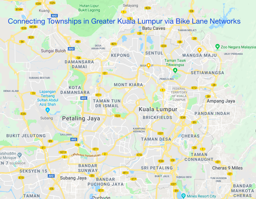 In the future: Connecting Townships and cities in Klang Valley (Greater Kuala Lumpur) via a network of bicycle lanes to encourage urbanites to use NMT.